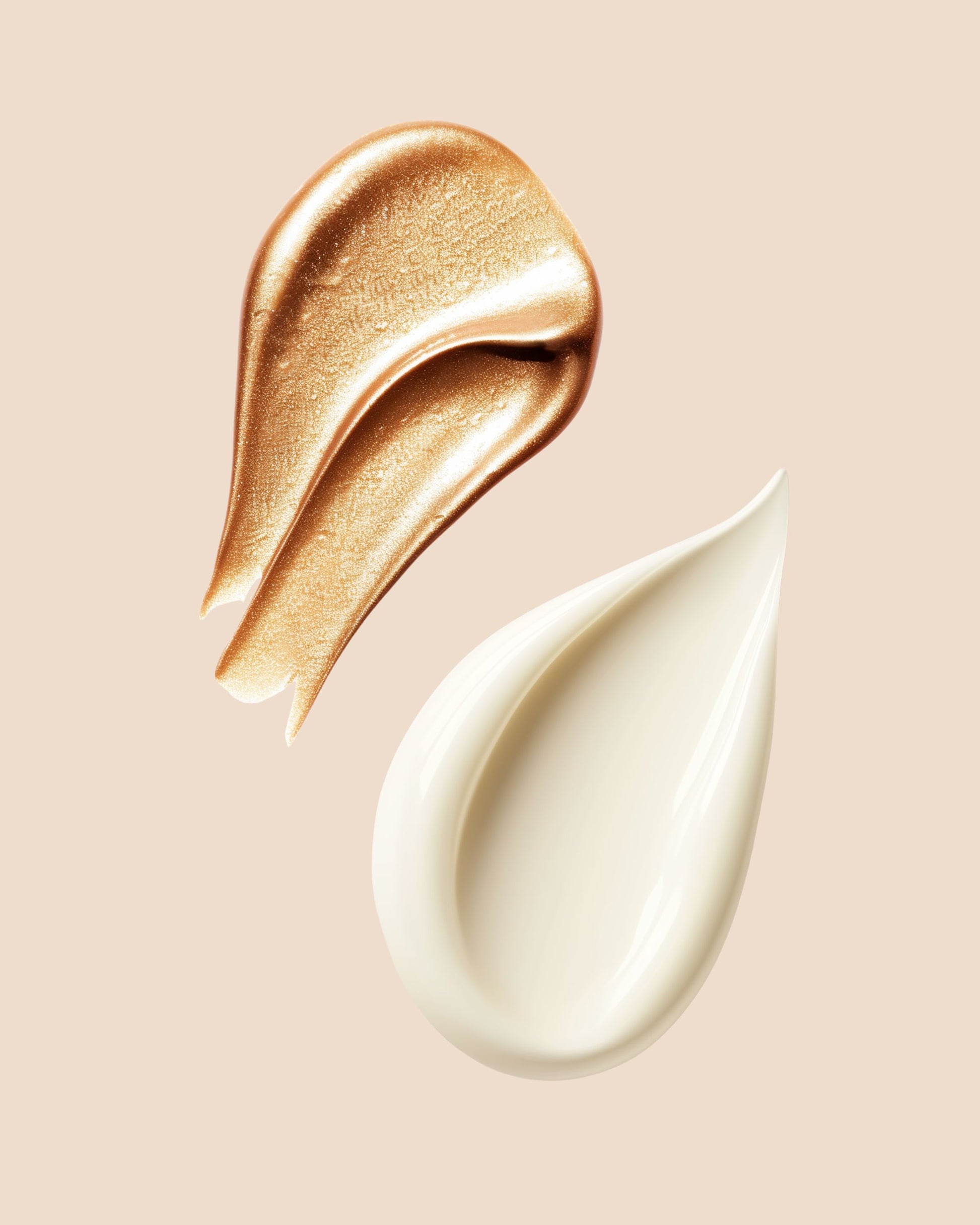 Mylk : lotion légère, soyeuse et respirante. Elixir : gel-huile onctueux et éclatant qui scelle l’hydratation. Ensemble : un système en deux étapes pour une douceur et un éclat durables.